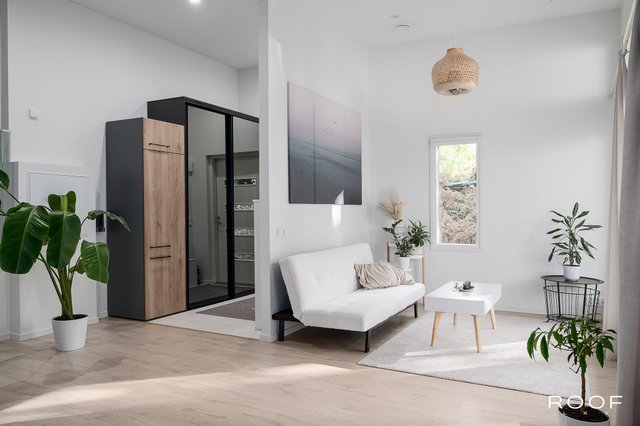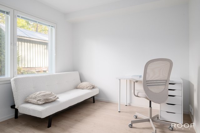 Vuonna 2020 valmistunut tarjoava koti hurmaa erityisesti upealla, korkeakattoisella olohuone–keittiö -tilallaan, jossa suuret ikkunat päästävät luonnonvalon kauniisti sisään. Moderni keittiö tarjoaa laadukkaat kodinkoneet, runsaasti säilytystilaa ja tilaa suuremmallekin ruokailuryhmälle. Arkea sujuvoittavat kaksi erillistä WC:tä sekä toimivat kylpyhuone- ja kodinhoitotilat, joista on suora pääsy omalle terassille. Toisen wc:n yhteydessä on lisäksi spatunnelmaa tuova kylpyamme arjen rentoutumishetkiin. Laadukkaat materiaalit ja selkeä tilaratkaisu tekevät asumisesta miellyttävää. Ulkovarasto autopaikat sisäänkäynnin yhteydessä viimeistelevät kokonaisuuden.
