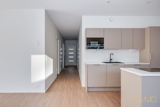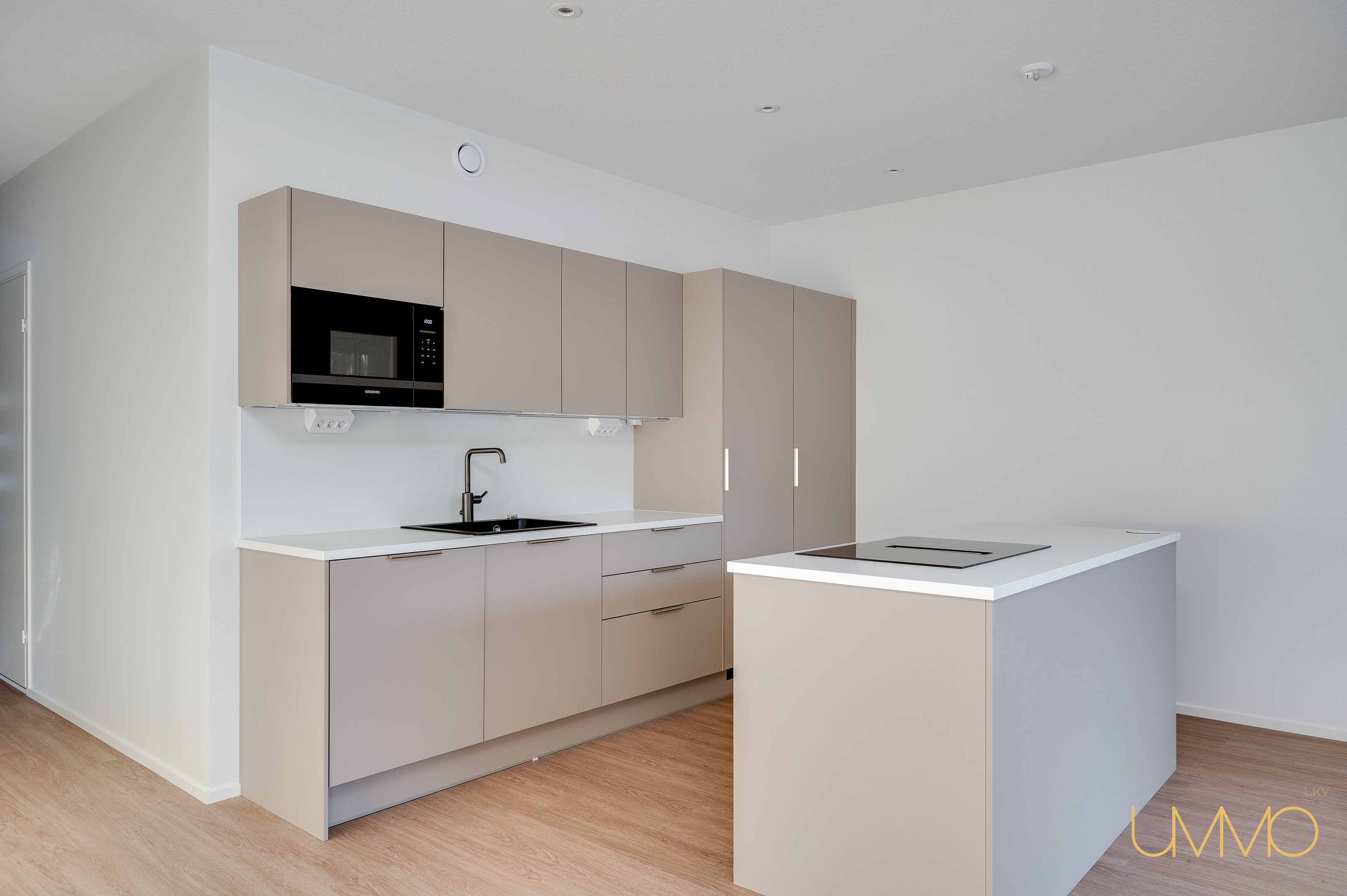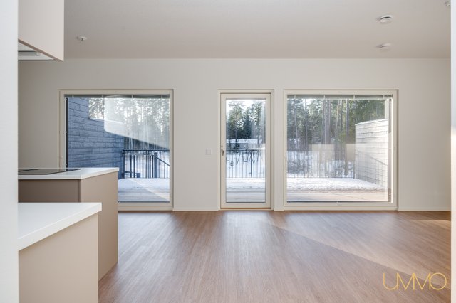 Tämä juuri valmistunut neljän huoneen asunto tarjoaa modernia asumista yhdessä tasossa. Asuntoon kuuluu oma sauna, avokeittiö sekä tilava terassi, johon on mahdollista asentaa ulkoporeallas. Kolme makuuhuonetta tarjoavat tilaa perheelle tai työhuoneille.