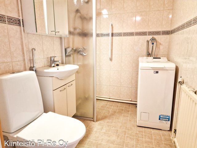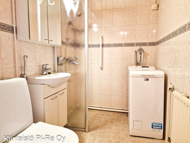 - KEITTIÖ: Keittiössä muovimatto lattiassa, seinät maalattu ja välitilassa laatta. kodinkoneina jääkaappi/pakastin, joka uusittu noin vuosi sitten, liesi ja liesituuletin. OLOHUONE: Olohuoneessa muovimatto lattiassa, seinissä tapettia. Kulku parvekkeelle. MAKUUHUONE: Makuuhuoneessa muovimatto lattiassa, seinät tapetoidut. Seinustalla kaapisto. KYLPYHUONE: Pesutiloissa lattiassa laatat ja seinät kaakeloidut. Varustuksena pesukoneliitäntä, suihku, suihkuseinä, käsienpesuallas, peili- ja allaskaappi sekä wc. PARVEKE: Lasitettu parveke. SÄILYTYSTILAT: Eteisessä ja makuuhuoneessa kaappeja sekä huoneistokohtaiset varastot.