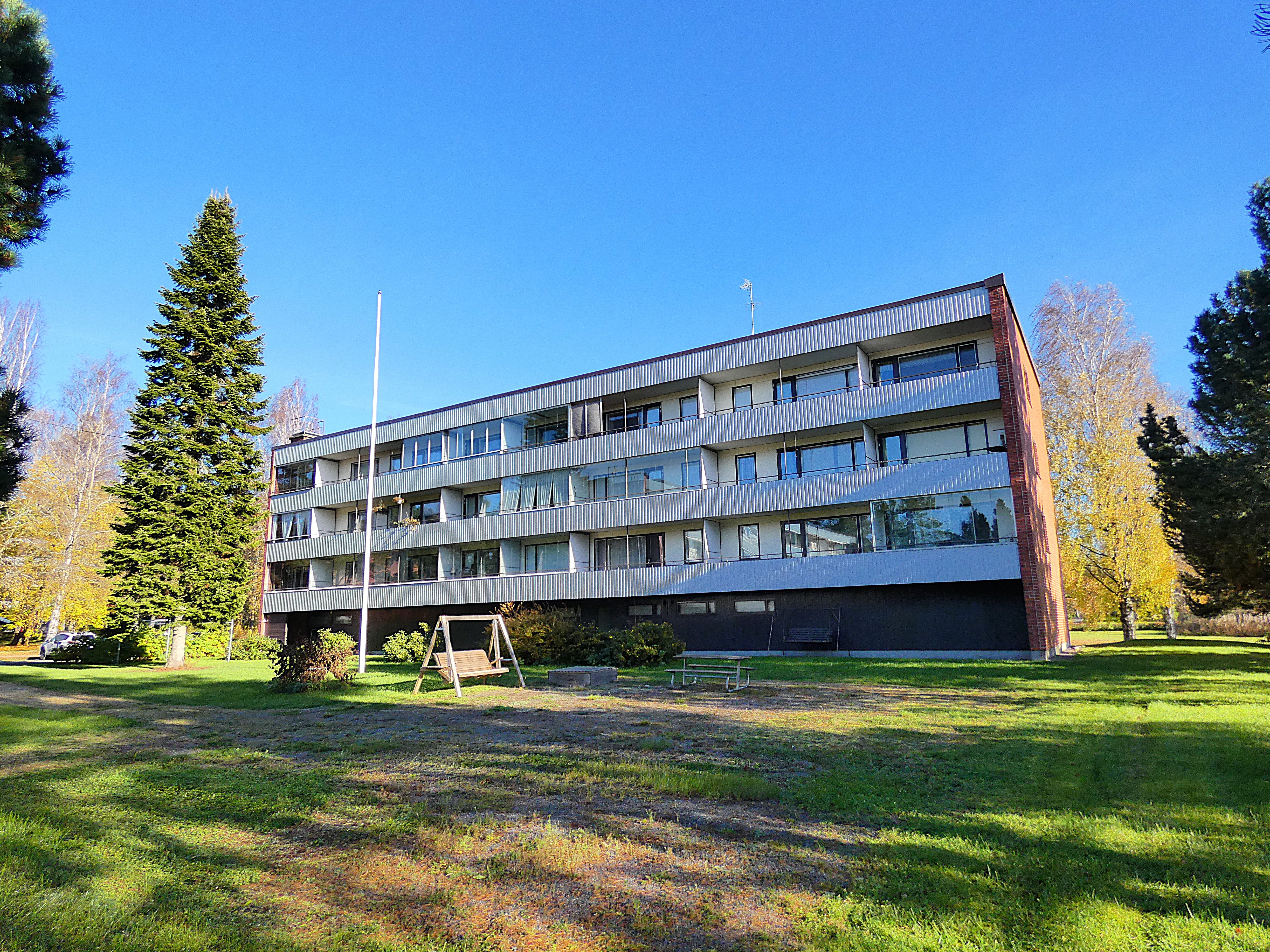 Tämä asunto sijaitsee kolmikerroksisen talon ensimmäisessä kerroksessa, vain muutama rappunen kotiovelle.