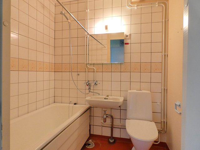 - WC-istuin, suihku, pesukoneliitäntä, ja kylpyamme