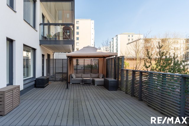 - Huoneistolle kuuluu suuri aidattu terassi, joka aukeaa taloyhtiön sisäpihalle päin.