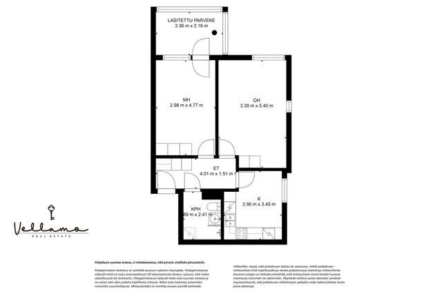 - Yhtiöjärjestyksen mukainen, Isännöitsijäntodistuksen mukainen, (Pinta-ala ei ole tarkistusmitattu ja todellinen pinta-ala voi olla suurempi tai pienempi, kuin ilmoitettu)