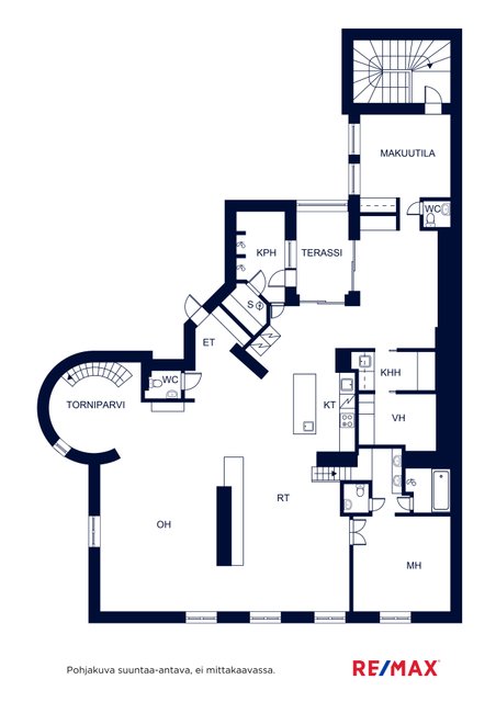 4h, k, avok,ruokailutila, walk in vaatehuone, kph,wc, parvi, khh, saunaos, torni, parveke/terassi.