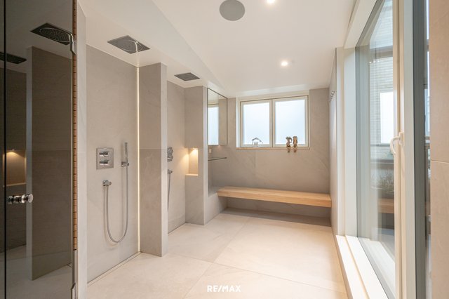 - Masterbedroomin yhteydessä oleva kylpyhuone: Amme, suihku, 2x lavuaari, allaskaappi, peilikaappi, hanat. LATTIAT: Laatta. SEINÄT: Laatta. Saunan yhteydessä oleva kylpyhuone: Kaksi suihkua, ikkuna. LATTIA: Laatta. SEINÄT: Laatta.