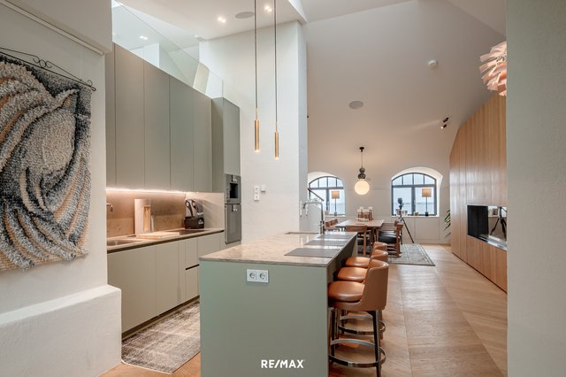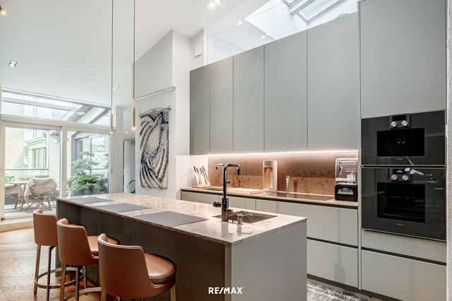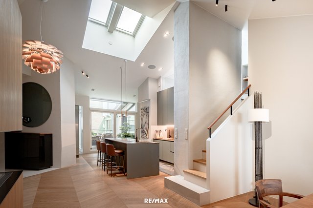 217 neliön huoneistossa on tilaa ja avaruutta, ja se on suunniteltu tarjoamaan mukavuutta ja ylellisyyttä. Kodikas olohuone yhdistyy saumattomasti ruokailutilaan ja keittiöön. Tiloja jakaa vaikuttava kiertoilmatakka. Keittiö on varustettu huippuluokan Gaggenaun laitteilla ja tyylikkäällä kivitasolla. Huoneistoon on toteutettu huippulaadukas Heos äänentoisto,- kotiteatterijärjestelmä rakennusvaiheessa. Asunto pysyy viileänä neljän ilmalämpöpumpun avulla myös kesällä.