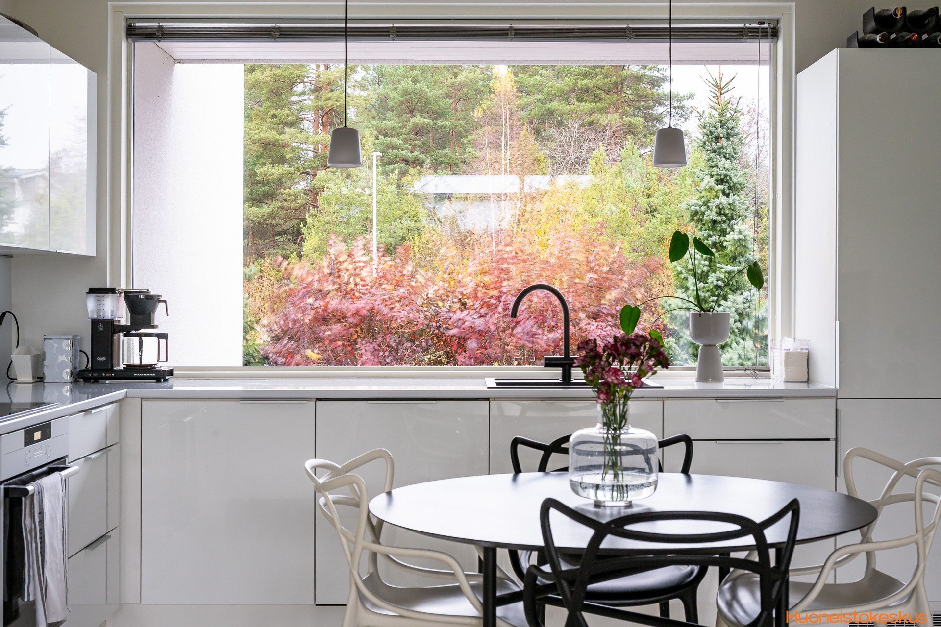 Keittiö on varustettu integroiduilla kodinkoneilla kuten induktioliedellä ja mikroaaltouunilla. Olohuoneesta ja makuuhuoneesta avautuu kauniit näkymät omalle piha-alueelle, etelän suuntaan.