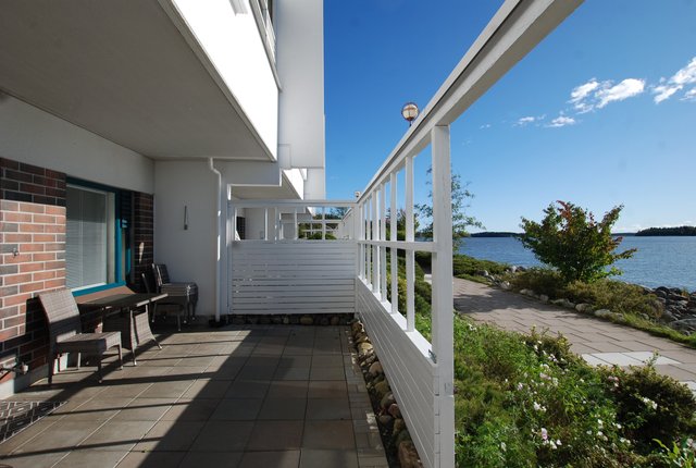Tässä täysin muuttovalmiissa ja vapaassa merinäköalakohteessa voi aistia meren kokonaisvaltaisesti; kokea veden liplatuksen ja voimankin äänen, suolaveden raikkaan tuoksun sekä mahtavan maiseman suoraan omalta tilavalta pihalta ja samassa tasossa olevasta huoneistosta.