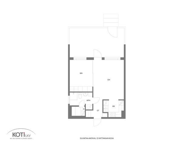 - Asunto sijaitsee pohjakerroksessa maan tasalla, ei portaita