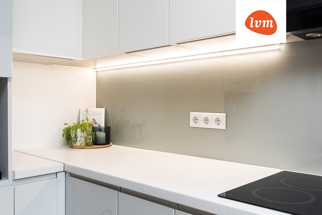 - Jääkaappi, astianpesukone, keittiösaareke, liesi, ja liesituuletin