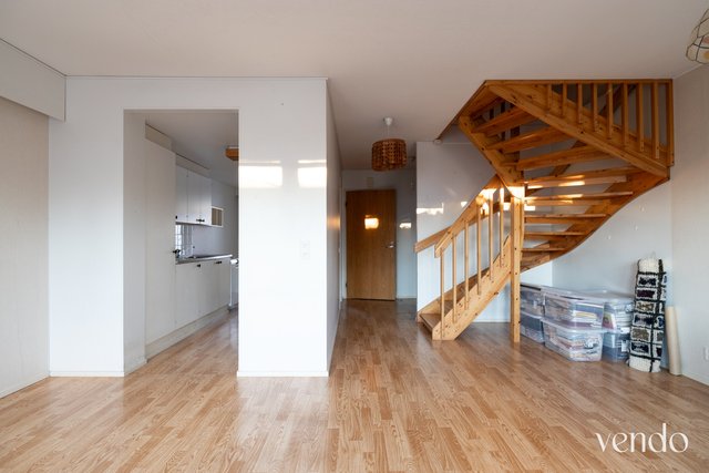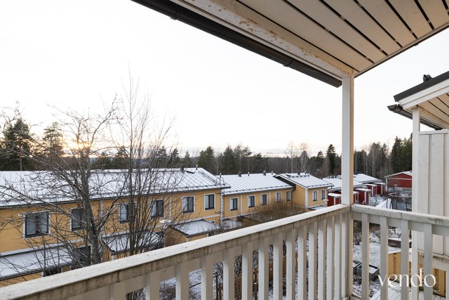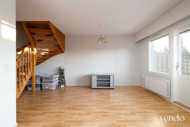 Sisääntulokerroksessa sijaitsevat keittiö ja olohuone. Olohuoneesta on käynti etelän ilmansuuntaan suuntautuvalle piha-alueelle. Myös yläkerran parvekkeella nautit sekä päivä- että ilta-auringosta. Kylpyhuone- ja saunatilat on saneerattu vuonna 2009. Säilytystilaa on riittämiin kaapistoissa, vaatehuoneessa sekä ulkovarastossa.