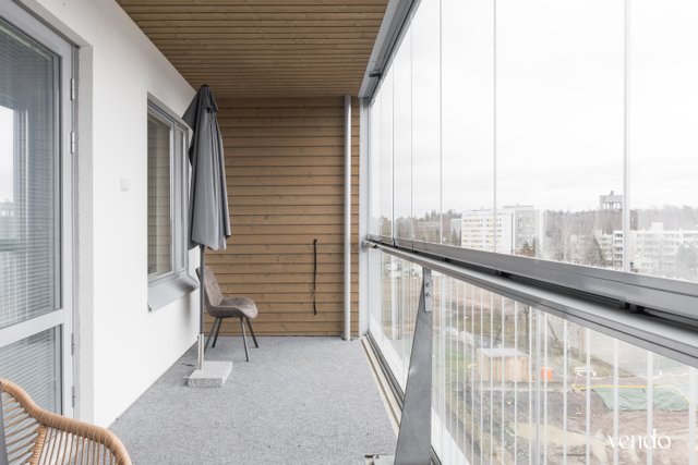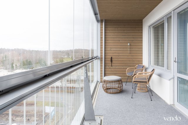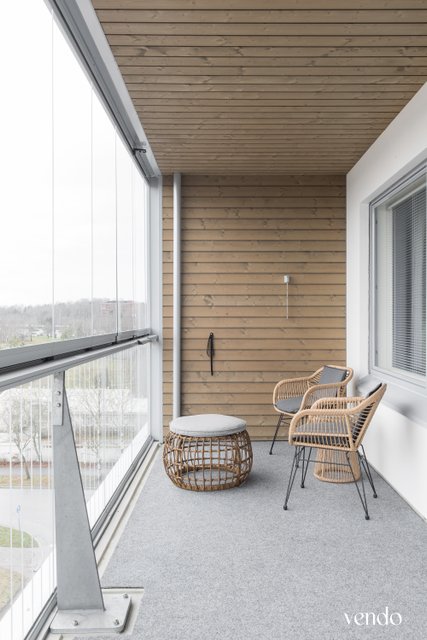 Ylimmän kerroksen kaksio suurella parvekkeella