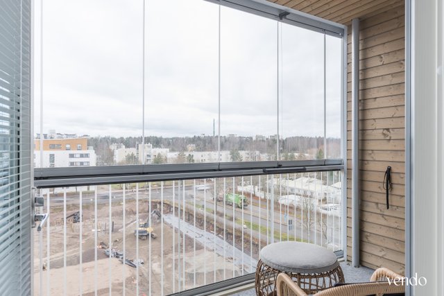Tilava, tyylikäs ja harkittu pohjaratkaisu tekee 44,5 neliöstä selkeälinjaisen ja toimivan kokonaisuuden. Avara olohuone yhdistyy saumattomasti keittiöön, jonka modernit kaapistot ja laadukkaat kodinkoneet luovat erinomaiset puitteet kokkailulle ja yhdessäololle. Makuuhuoneen puolelle saat helposti mahtumaan kaiken tarpeellisen, ja säilytystilaa löytyy runsaasti. Kylpyhuone on raikas ja moderni – vaaleat laatat, lasiseinä ja tyylikäs kalustus tuovat luksusta arkeen. Tässä kodissa ihastuttaa suuri lasitettu parveke, joka toimii käytännössä ylimääräisenä huoneena pitkälle syksyyn. Lasitus suojaa säältä, jolloin tila tuntuu jatkuvasti käytettävältä ja rauhalliselta.