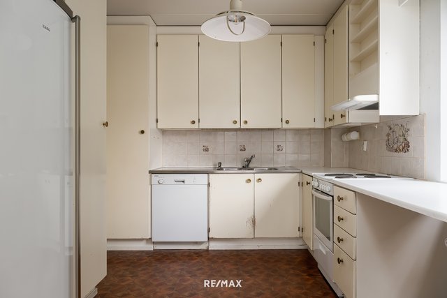 Keittiö ja märkätilat ovat remontoitavissa täysin nykypäivän vaatimusten mukaisiksi – tässä kodissa saat yhdistettyä huippusijainnin ja vapauden toteuttaa omat sisustus- ja tilaratkaisusi ilman kompromisseja.