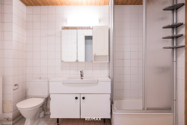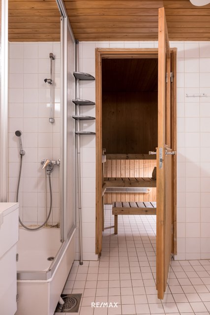 - Tyydyttäväkuntoinen kylpyhuone jonka yhteydessä huoneiston sauna. Kylpyhuoneessa hyvin tilaa pesutornille.