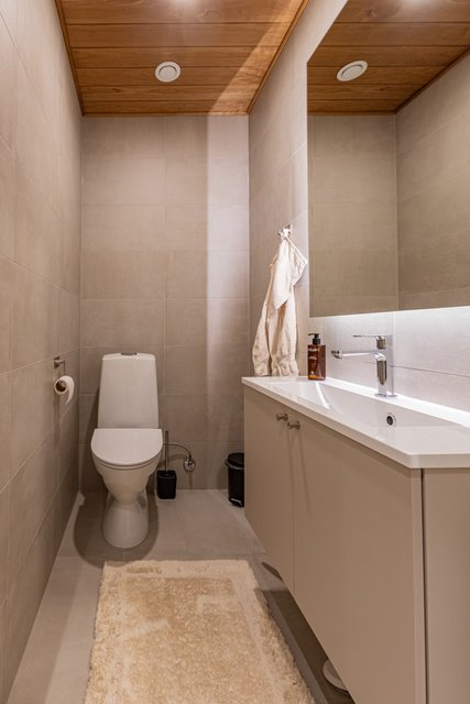 - WC-istuin, suihku, lattialämmitys, peili, pesuallas, ja bidee-suihku