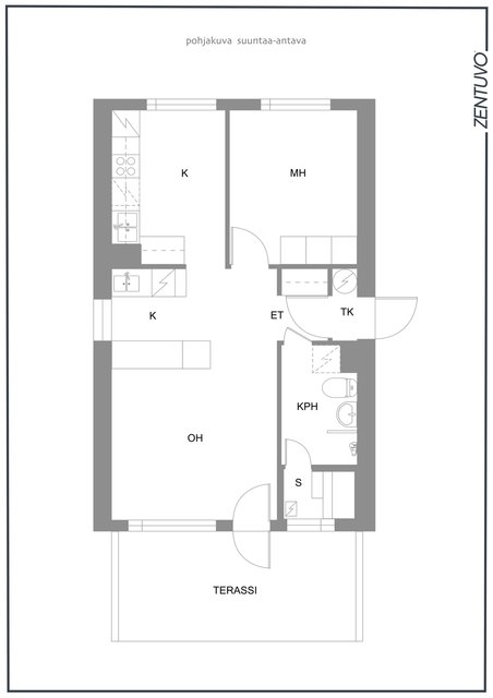 - Piha-alueelle ja metsään. Ikkunat kolmeen suuntaan. Päätyasunto.