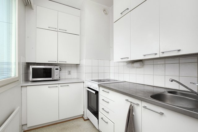 Asunnossa on käytännöllinen keittokomero, jossa on kaikki tarvittavat kodinkoneet. Olohuone on valoisa ja tilava ja sieltä on kulku parvekkeelle. Kylpyhuoneessa on tilaa pesukoneelle, mikä tuo lisämukavuutta arkeen.