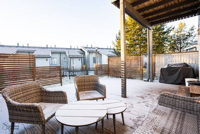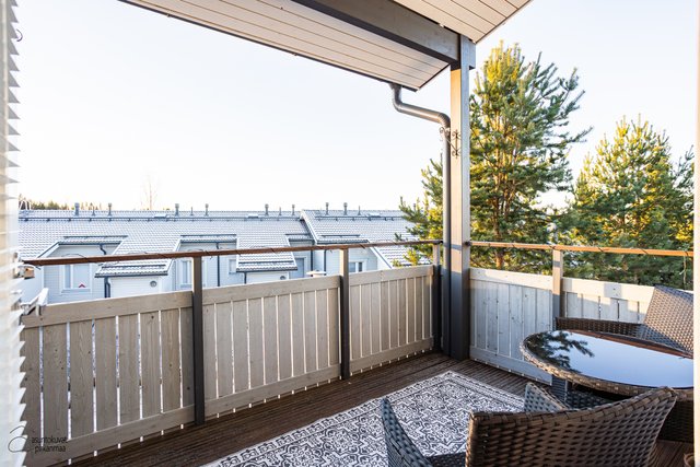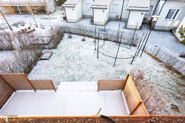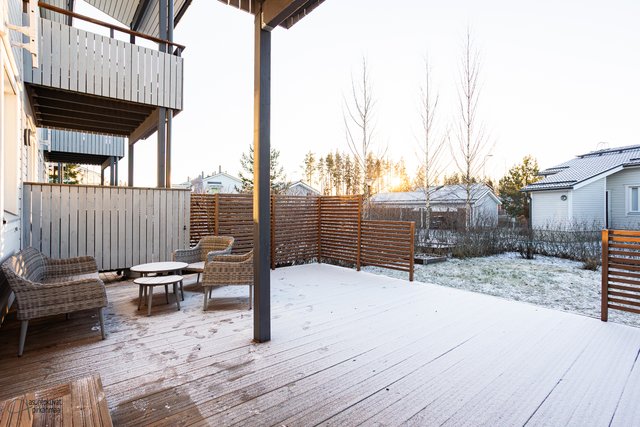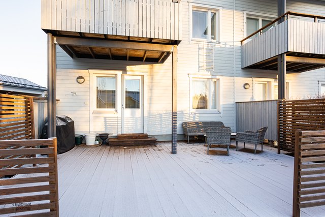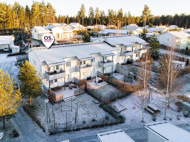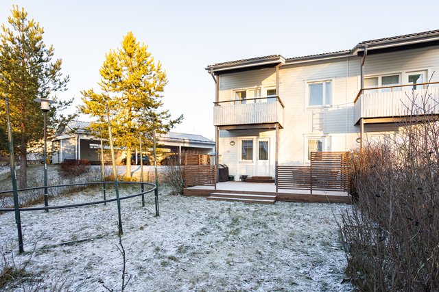 Tämä koti on rivitalon päätysasunto ja erittäin siistikuntoinen ja on hyvin pidetty ja huollettu koti. Sisääntulokerroksessa on hyvän kokoinen ja valoisa olohuone, josta on käynti parvekkeelle. Tyylikkääseen keittiöön mahtuu hyvin ruokapöytä ja mm. taso, allas ja välitila on uusittu v. 2021. Sekä keittiössä että olohuoneessa on hiljattain uusitut LED-spottivalot. Yksi kodin makuuhuoneista on sisääntulokerroksessa kuten myös toinen wc, jonka yhteydessä on myös suihku. Kaksi makuuhuoneista ja toinen wc on alakerrassa ja ylellisyytenä tässä kodissa on tilava kylpyhuone ja erillinen kodinhoitohuone, jossa on runsaasti kaappitilaa. Säilytystiloja on todella runsaasti, koska vaatehuoneita on kaksi ja lisäksi on porrasvarasto ja ulkovarasto. Kaikissa tiloissa on vesikiertoinen lattialämmmitys. Alakerrasta on käynti asunnon suojaisalle ja vehreälle pihalle ja laajennetulle terassille. Pihaan on istutettu mm. punaviinimarja- ja karviaispuskat. Auton säilytykseen on lämpötolpalliset katospaikka ja pihapaikka.