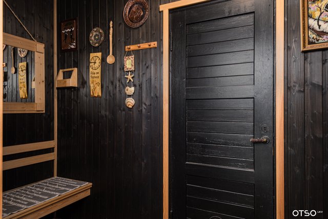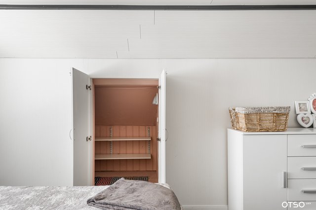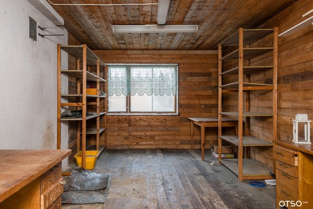 - Ullakko, seinäkaapit, kylmä ulkovarasto ja vaatehuone