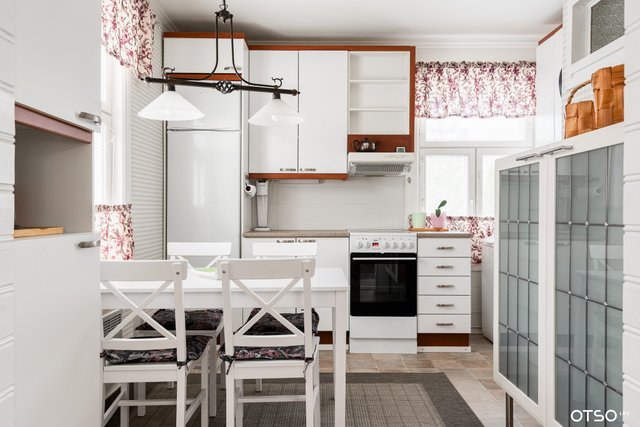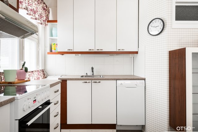 - Jenkkikaappi, liesituuletin, astianpesukone, liesi, uuni, ja pesukoneliitäntä