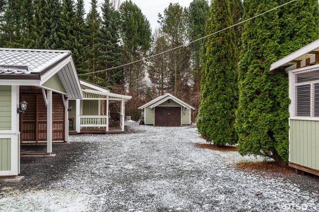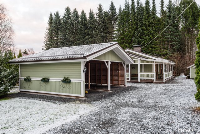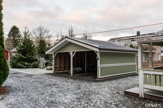 - Kahden auton katos, vanha autotalli, sekä talousrakennus jossa sauna, oleskeluhuone, verstas- ja varastotilaa.