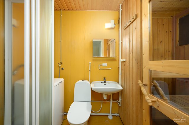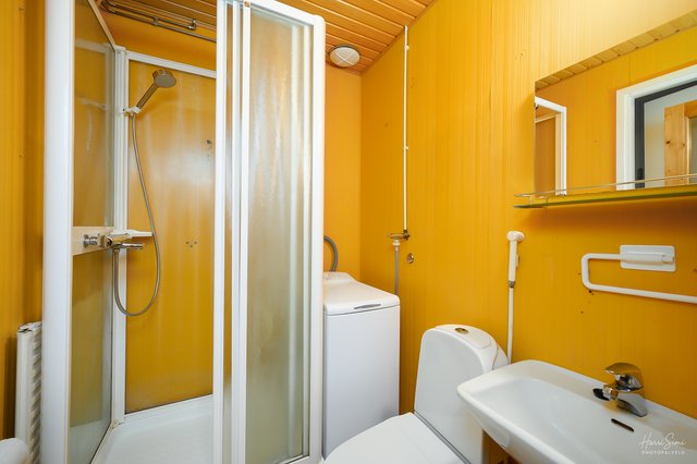 - Peili, wc-istuin, pesuallas, pesukoneliitäntä, bidee-suihku, ja suihkukaappi