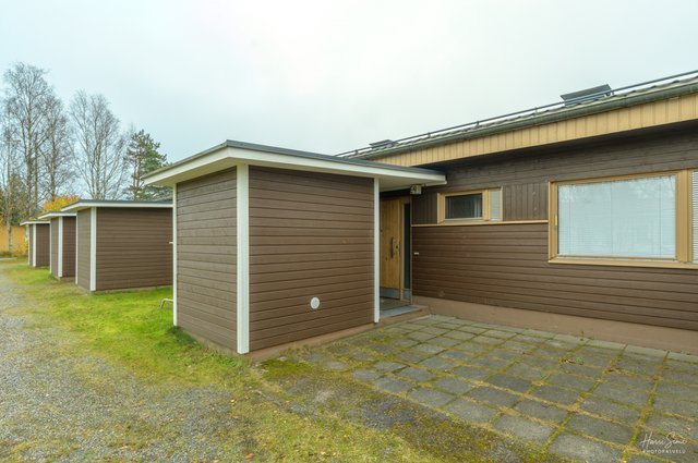 Pihalle saa auton sähköpistokepaikalle ja asunnossa on säilytystiloina sekä kylmä varasto etuoven yhteydessä, että vaatehuone sisällä.