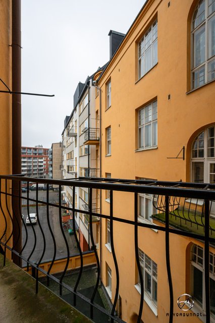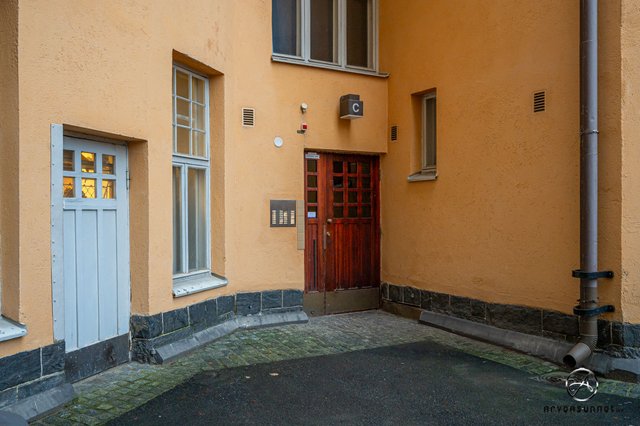 Ja sitten on vielä se yksityiskohta, jota ei osaa odottaa keskellä Hakaniemeä: taloyhtiön pihalla sijaitsee remontoitu, ihastuttava pihasauna. Sellainen arkinen luksus, joka tekee kaupunkiasumisesta yllättävän pehmeää.