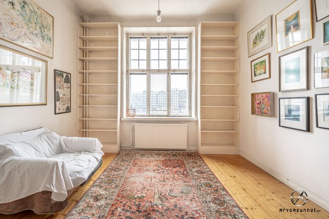 89,1 neliötä Hakaniemessä. Kahdesta yksiöstä syntynyt koti, jonka mittasuhteet, sijainti ja tunnelma kertovat ajasta, jolloin asunnot suunniteltiin elämistä varten, ei neliöiden optimointia tai markkinoita varten.