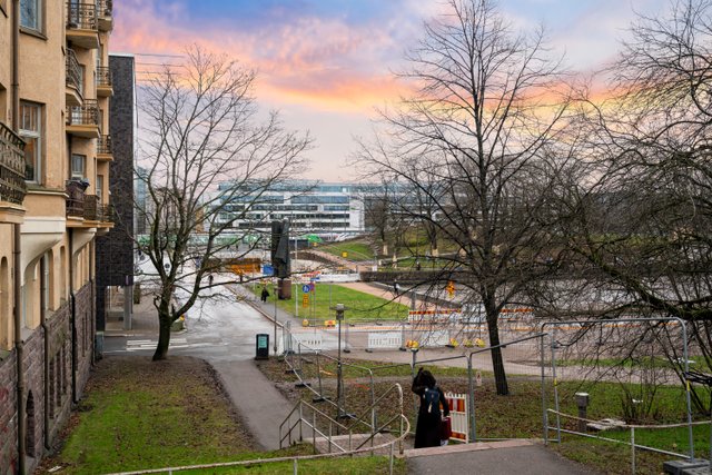 - Näkymä Kansallisteatterin suuntaan sekä rauhalliselle sisäpihalle.