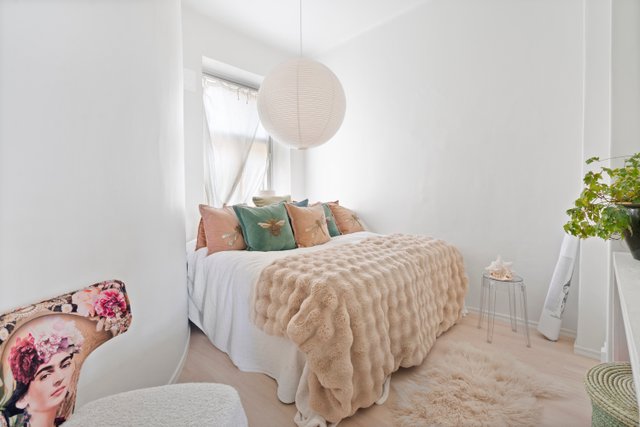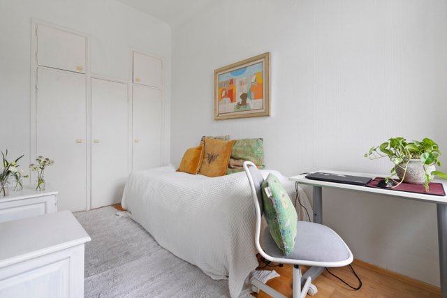 - Isommassa makuuhuoneessa lattia laminaatti, seinät maalattu. Pienemmässä makuuhuoneessa lattia parketti, seinät maalattu, yhdessä seinässä maalattu lasikuitutapetti / verkko.