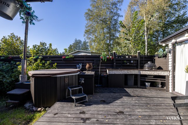 Tämä kaunis koti on rakennettu vuonna 1988 ja se on pidetty hyvässä kunnossa vuosien varrella. Asunnossa on kaksi makuuhuonetta, avokeittiö/olohuone, kylpyhuone saunalla sekä erillinen wc. Asuntoon kuuluu myös tilava terassi, joka avautuu suojaisalle pihalle. Osa terassista on katettu ja lämmin tila. Asuntoon kuuluu myös tilava ulkovarasto sekä autokatospaikka sähköauton latauspisteellä.