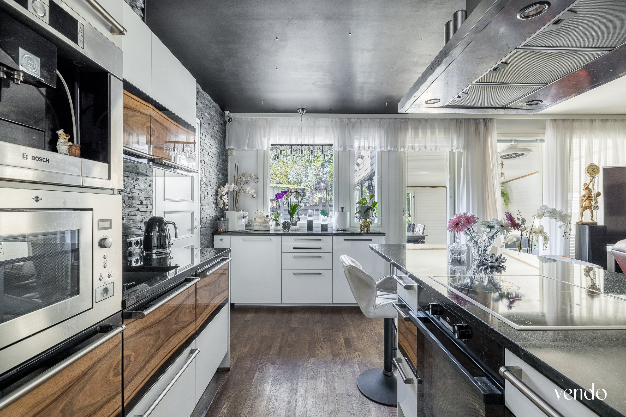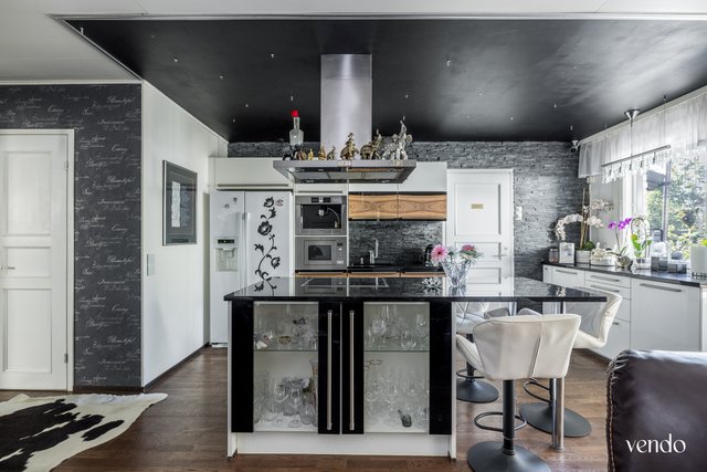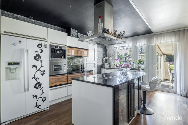 - Jääkaappipakastin, uuni, liesi, keittiösaareke, astianpesukone, ja liesituuletin