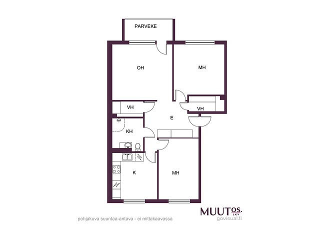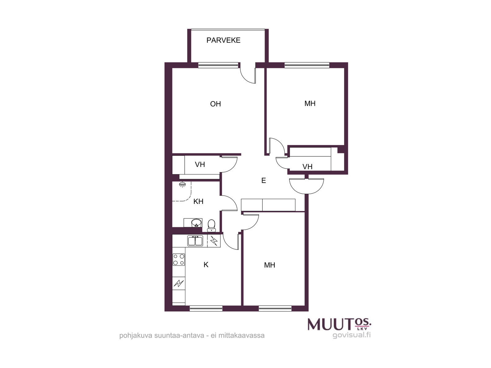 Kodissa on selkeä ja käytännöllinen pohjaratkaisu, joka sopii erinomaisesti niin pariskunnille, perheille kuin tilaa arvostaville yksinasujillekin. Kaksi reilun kokoista makuuhuonetta, tilava olohuone sekä erillinen keittiö tarjoavat runsaasti tilaa elämiseen ja yhdessäoloon. Olohuoneesta on kulku lasitetulle parvekkeelle– täydellinen paikka aamukahville tai iltahetkelle.