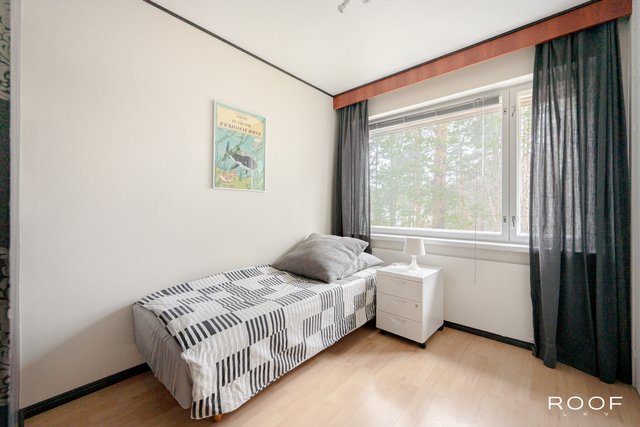 - 2 makuuhuonetta 1. makuuhuone: VARASTUS: verhokiskot ja sälekaihtimet SEINÄT: maali ja tapetti LATTIA: laminaatti 2. makuuhuone VARASTUS: verhokiskot ja sälekaihtimet SEINÄT: maali LATTIA: laminaatti