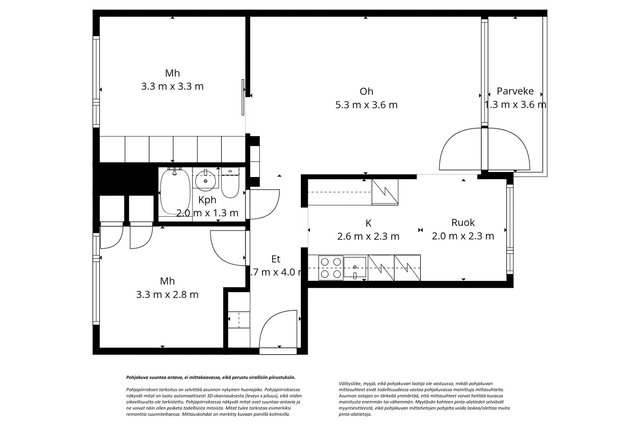 - Pinta-ala ei ole tarkistusmitattu ja todellinen pinta-ala voi olla suurempi tai pienempi, kuin ilmoitettu