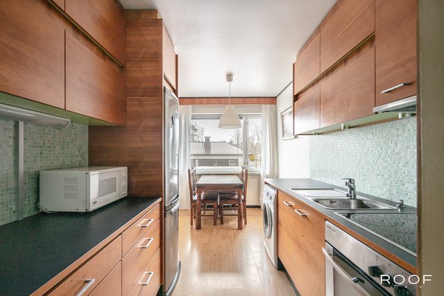 - Huoneiston pinta-ala on yhtiöjärjestyksen, isännöitsijäntodistuksen ja myyjän ilmoituksen mukaan 62m². Pinta-alaa ei ole tarkistusmitattu. Edellä mainittu pinta-ala saattaa tämän ikäisessä kohteessa poiketa olennaisestikin huoneiston nykyisen ja rakentamisaikaisen mittaustapojen ja standardien mukaan laskettavasta pinta-alasta. Huoneiston todellinen pinta-ala voi siis olla yhtiöjärjestyksessä, isännöitsijäntodistuksessa ja esitteessä mainittua pienempi tai suurempi.