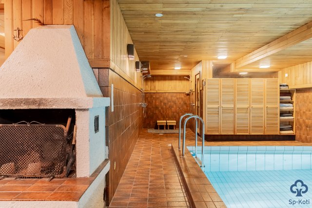 - Uima-allasosaston yhteydessä sauna, sähkökiuas, kolme suihkua.