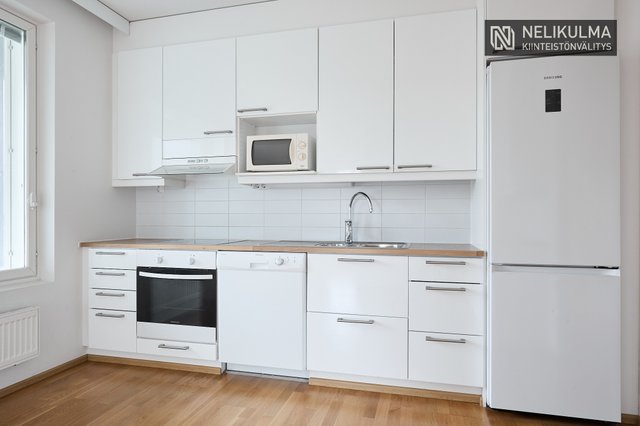 Omalla tontillaan oleva vuonna 2012 valmistunut yhtiö on hyvin hoidettu. Kodista avautuvat näkymät Jaaninojan ja Munkkionpuiston suuntaan.