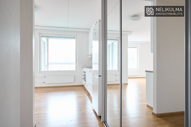 Tämä valoisa ja moderni kulmahuoneisto sijaitsee rauhallisella alueella, kuitenkin aivan palvelujen lähellä.
