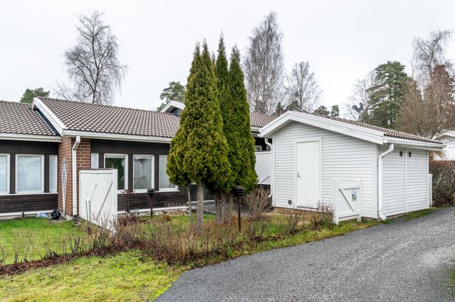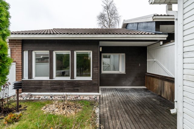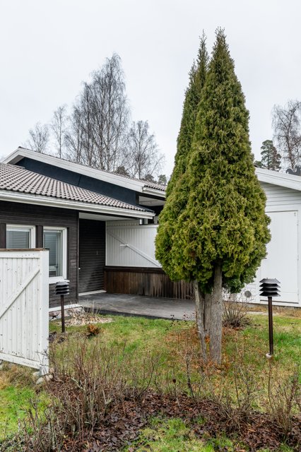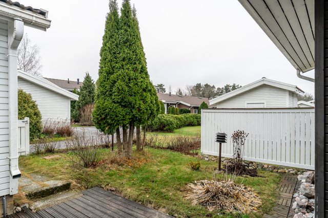 - Takapihalla katettu terassi sekä ulkovarasto.