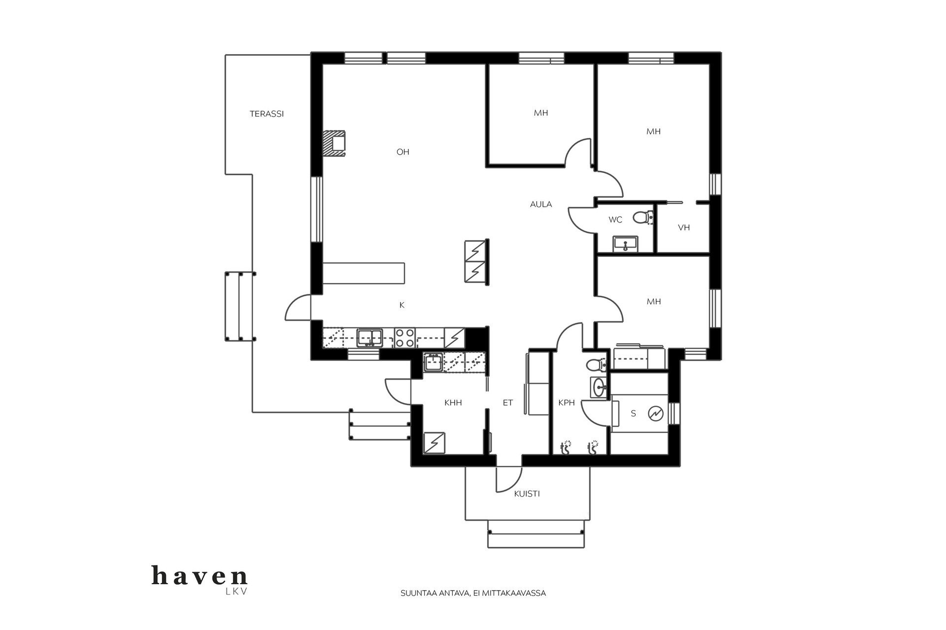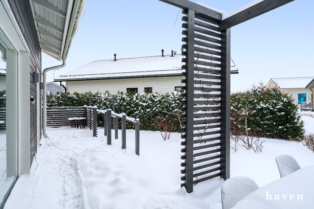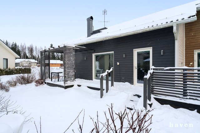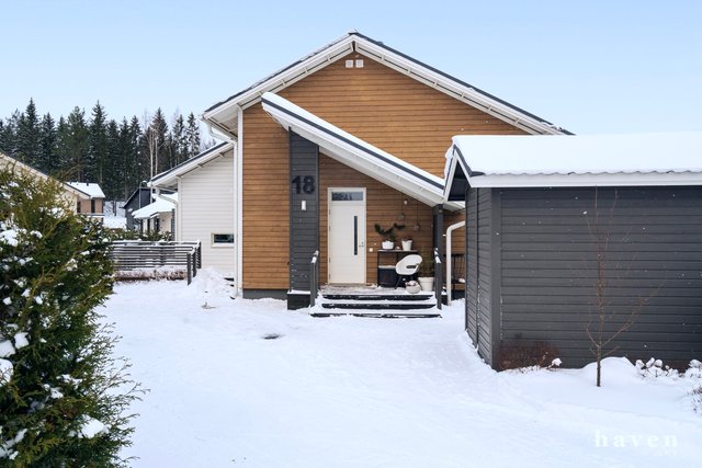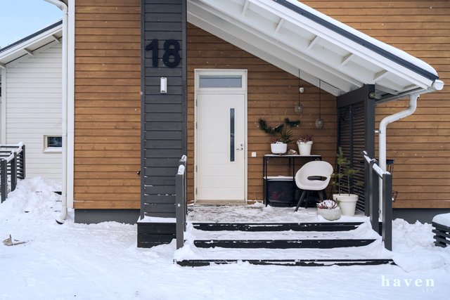Yhteen tasoon rakennetussa omakotitalossa on toimiva pohjaratkaisu ja laadukkaat materiaalit. Kolme kivankokoista makuuhuonetta, avoin keittiö-olohuonetila, josta käynti isolle terassille ja takapihalle. Tyylikäs saunaosasto, kodinhoitohuone ja erillinen wc. Iso ja avoin aulatila mukautuu arjen muuttuviin tarpeisiin – työskentelyyn, liikkumiseen tai vaikka leikkeihin.