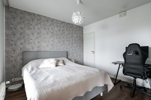 - Tilava makuuhuone, jonne saa mahdutettua myös etätyöpisteen. Makuuhuoneen yhteydessä fiksun kokoinen vaatehuone.