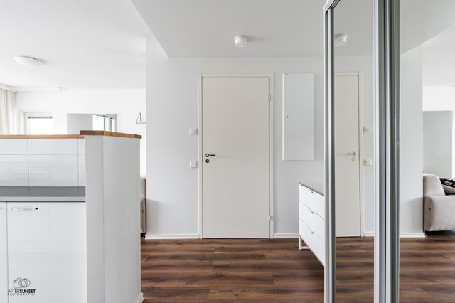- Eteisessä vinyylilattia ja liukuovikaapisto.