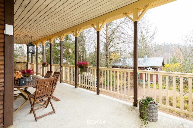 - Parveke on upean kokoinen ja parveke kiertää taloa kahdelta sivulta noin 50m2 kokoinen (ei tarkistusmitattu). Alakerrassa terassi missä kiva vilvoitella saunan jälkeen.