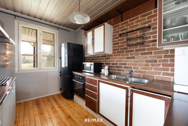 - Rakennusvalvonnasta saadun vastauksen mukaan. Haja-alueella rakennusoikeus on rakennusjärjestyksen mukaisesti 10 % kiinteistön pinta-alasta. Kohteessa rauennut rakennuslupa autotallille, päätöspäivämäärä 8.6.2006. Edellä mainitulla päivämäärällä on tämänhetkinen asuinrakennus muutettu talousrakennuksesta asuinrakennukseksi ja kiinteistöllä oleva vanha asuinrakennus muutettu talousrakennukseksi. Koska tämänhetkinen alun perin vuonna 1964 rakennettu asuinrakennus on ensin ollut rakennusluvaltaan talousrakennus ei rakennuksesta ole asuinrakennuksen pohjakuvia joista kävisi ilmi todelliset asuin-neliöt. Kohteen rakennuksen rakennusvuoteen perustuen vain vähän lupapapereita saatavilla, päärakennus on kuitenkin todettu loppukatselmoiduksi. Saatavilla muutostöiden mitallistetut pohjakuvat, joiden pinta-alat voivat poiketa ilmoitetusta. Jos haluat varmentua tarkoista pinta-aloista suosittelemme tarkastusmittausta. Esitteellä ilmoitetut pinta-alat perustuvat epäviralliseen rakennus ja huoneistorekisteriotteeseen, sekä vuonna 2006 päivättyjen laajennuksen rakennuslupapiirustusten tietoihin, jossa ei ole mainittu asuinneliöitä.