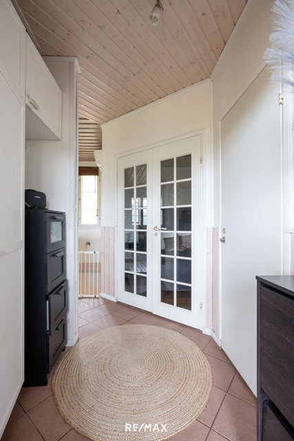 Sisätiloissa lämpö ja tunnelma kohtaavat käytännöllisyyden. Kotiin lämpöä ja viihtyisyyttä tuovat varaava takka sekä ilmalämpöpumppu takkatoiminnolla – täydelliset elementit viileisiin iltoihin ja energiatehokkaaseen arkeen. Kodin tunnelmalliset yksityiskohdat, materiaalit ja kaunis sisustus luovat rauhallisen ja kodikkaan ilmapiirin.
