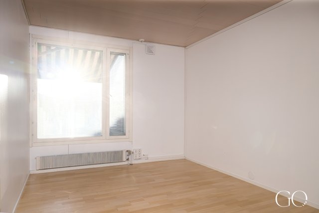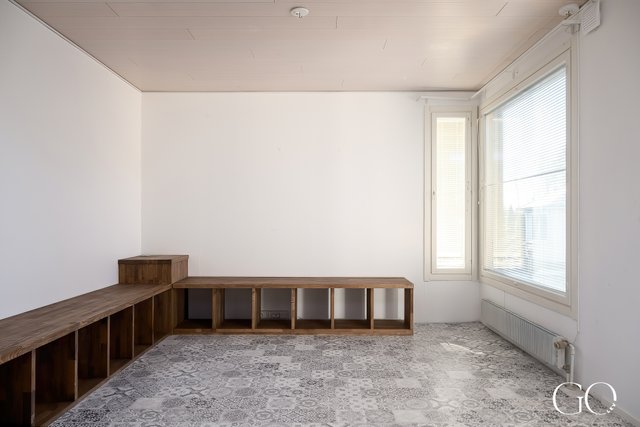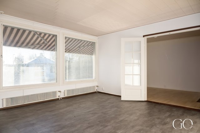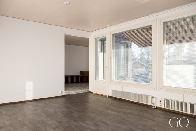 - Olohuoneessa vinyylilattia ja maalatut seinät.