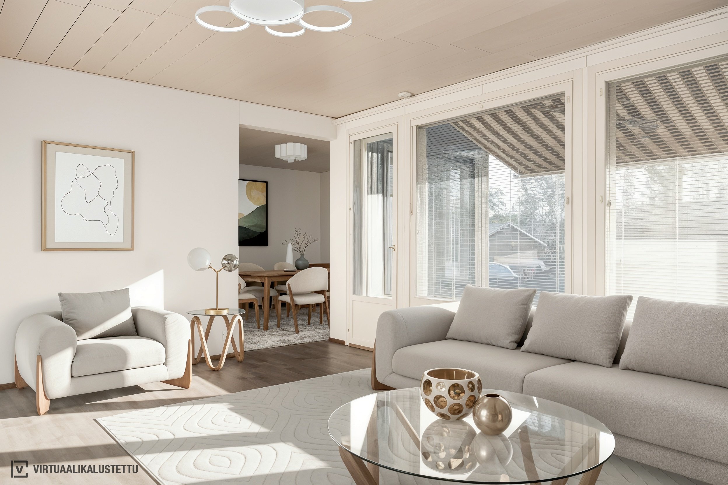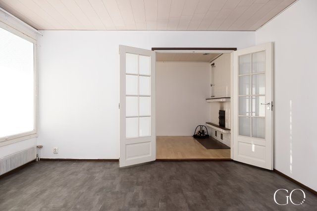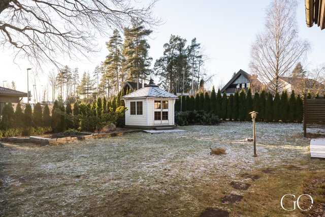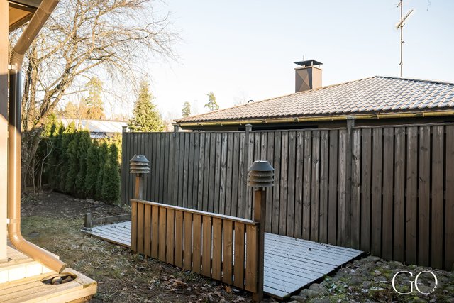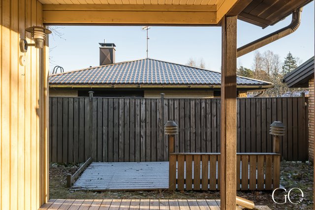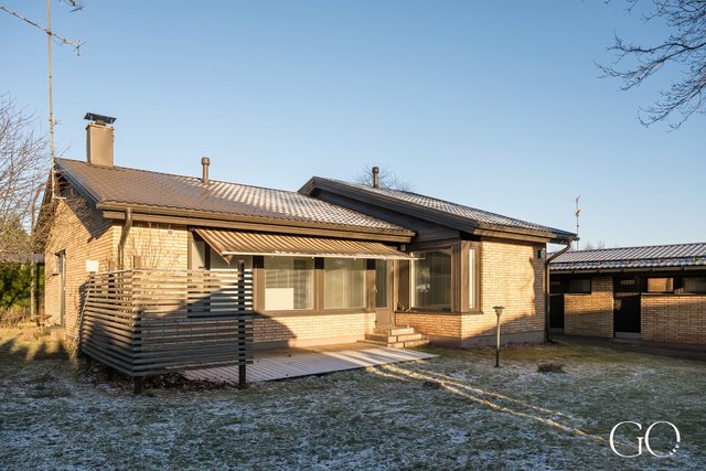 Yksitasoinen pohjaratkaisu on toimiva ja avara. Kodissa on tilava keittiö, iso olohuone, takkahuone, kaksi hyvänkokoista makuuhuonetta, erillinen WC sekä tilava kylpyhuone, josta on suora kulku pihalle – arjen sujuvuutta parhaimmillaan.